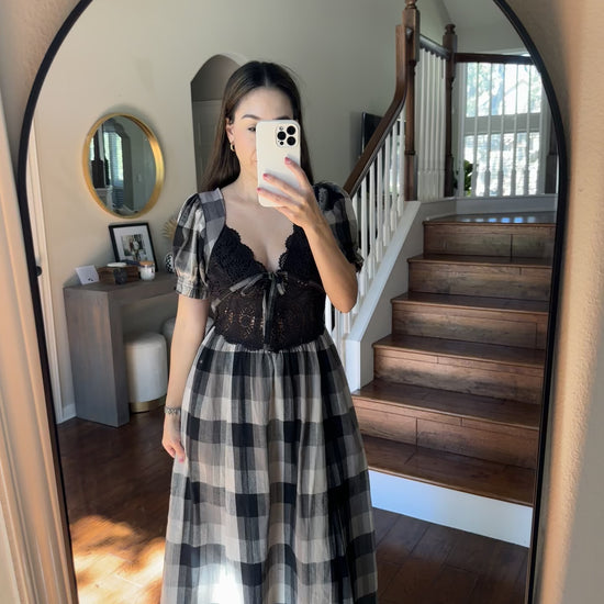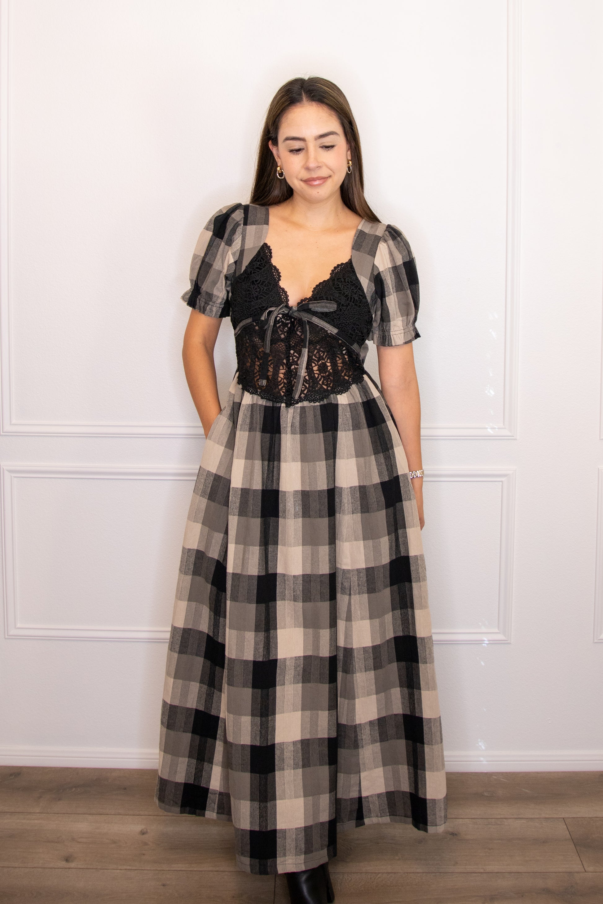this maxi dress is full of the most gorgeous details in the lace corset and print.
